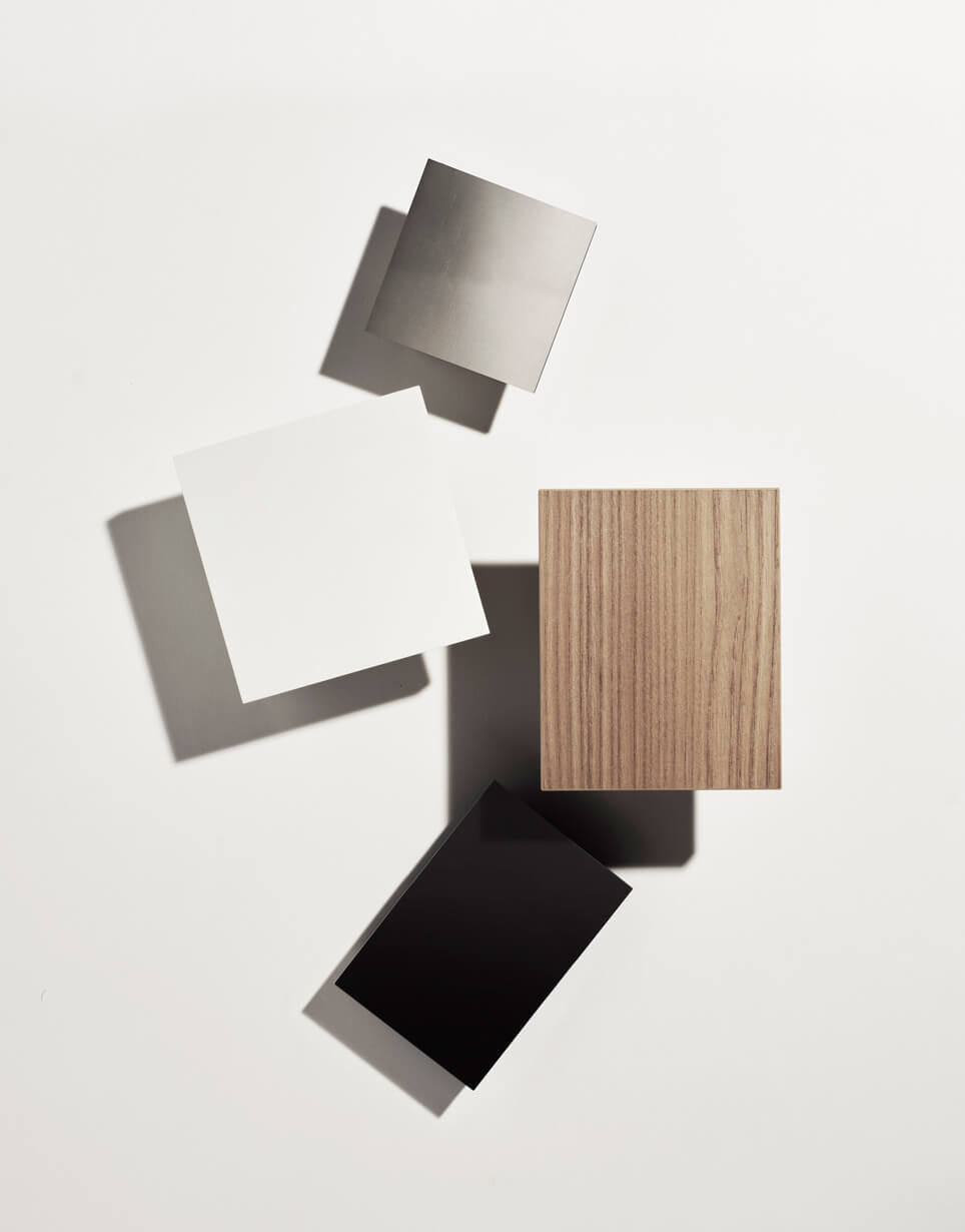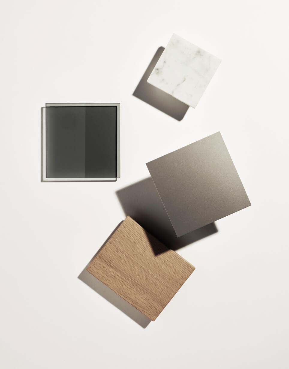 The photographic project by Gianluca Bellomo interprets the finishes through essential compositions and the use of sharp, raking light, which emphasizes the different qualities of the surfaces.