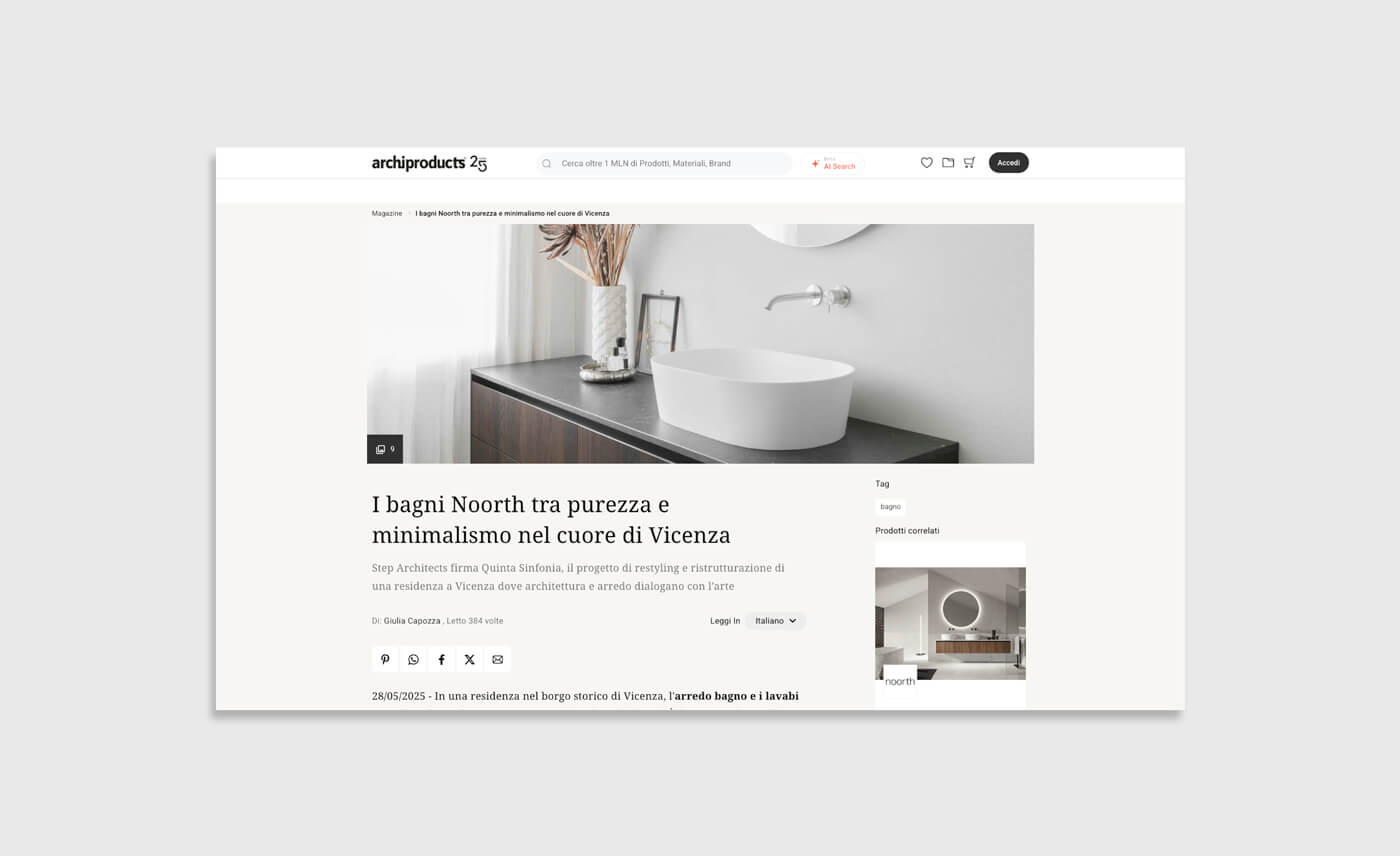 Noorth Bathrooms between Purity and Minimalism in the Vicenza Centre, di Giulia Capozza